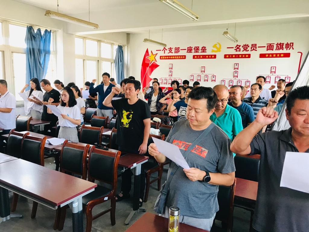 副院长程晖带领全体教师进行宣誓承诺,严格遵守《高等学校教师职业道德规范》,争做一名爱国守法、敬业爱生、教书育人、严谨治学、服务社会、为人师表的体育教育工作者,决不辜负人民教师这个光荣称号。全体教师签订了书面承诺书。