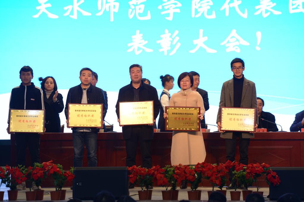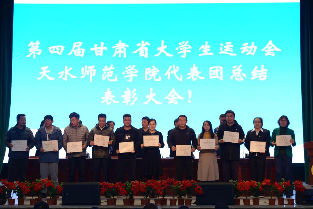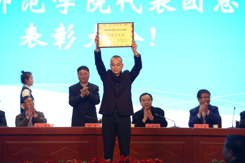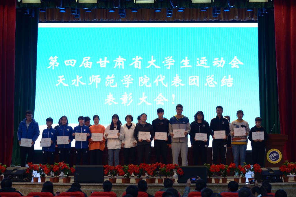 10月14日下午,第四届甘肃省大学生运动会m88 app代表团总结表彰大会在学校文化大礼堂召开。学校党委副书记、校长安涛出席会议并为受到表彰的单位和个人进行颁奖。校工会、学生处、团委、二级学院相关负责人,m88 app全体师生和代表团全体运动员、教练员、工作人员共计800余人参加大会。大会由副校长、校体委主任安建平主持。