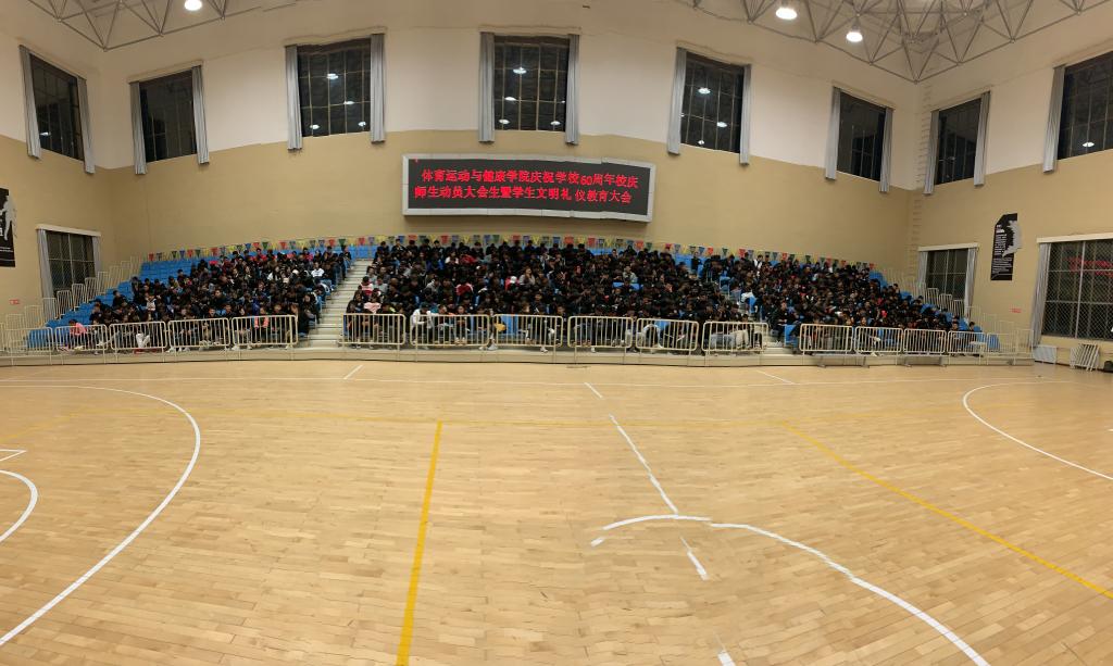 10月8日晚上7:30,m88 app在综合体育馆组织召开庆祝学校60周年校庆师生动员大会暨学生文明礼仪教育大会。体育学院领导班子成员、全体教职工及17级、18级、19级全体学生,共计600多人参加。会议由学院党总支副书记吴建全主持。