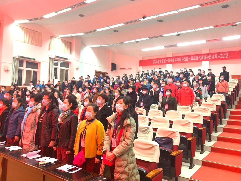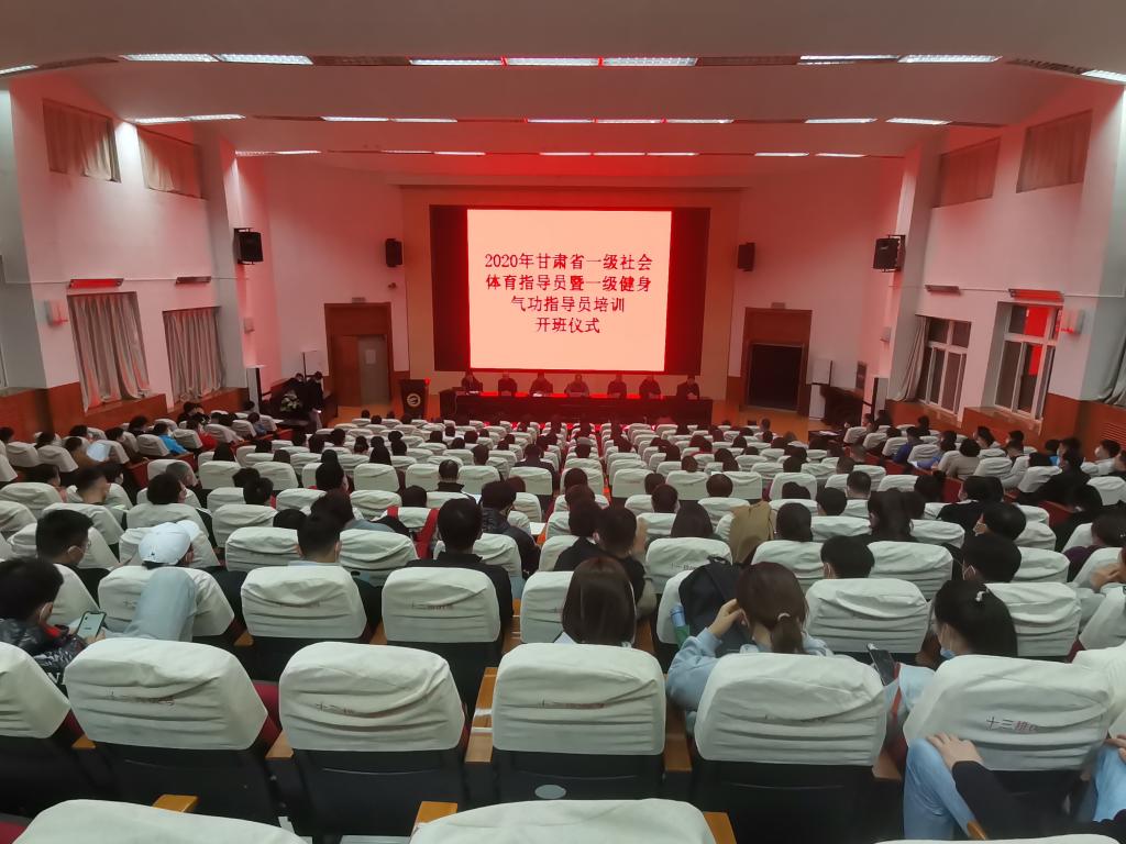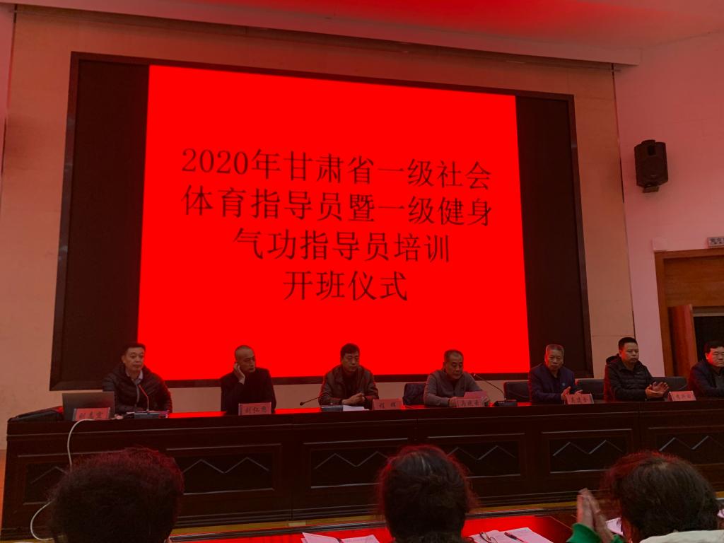 为了贯彻落实《全民健身计划(2016-2020年)》,加强我省社会体育指导员队伍,11月5日晚,2020年甘肃省一级社会体育指导员暨健身气功一级社会体育指导员培训班(中东片区)在二号报告厅隆重开班,甘肃省社会体育管理中心副主任马晓云,甘肃省社会体育指导员协会副会长、天水市麦积区体育发展中心主任李永明,体育学院党总支副书记吴建全,副院长程晖、刘仁憨、苏兴田出席开班典礼,本次开班典礼由甘肃省社体中心健身气功部部长刘志宏主持。