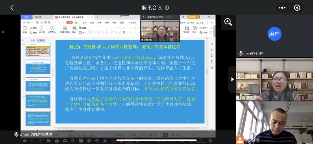 12月19日下午15:00-17:00,首都体育学院原副校长,m88 app第四轮重点学科“体育学”首席专家,教授、博士生导师王凯珍应邀为m88 app师生作题为“身体素养视域下的幼儿体育培育发展”的学术报告,会议采用腾讯会议线上方式举行。
