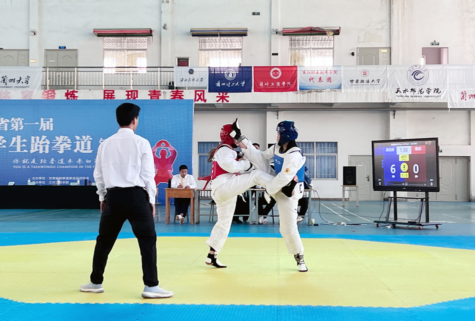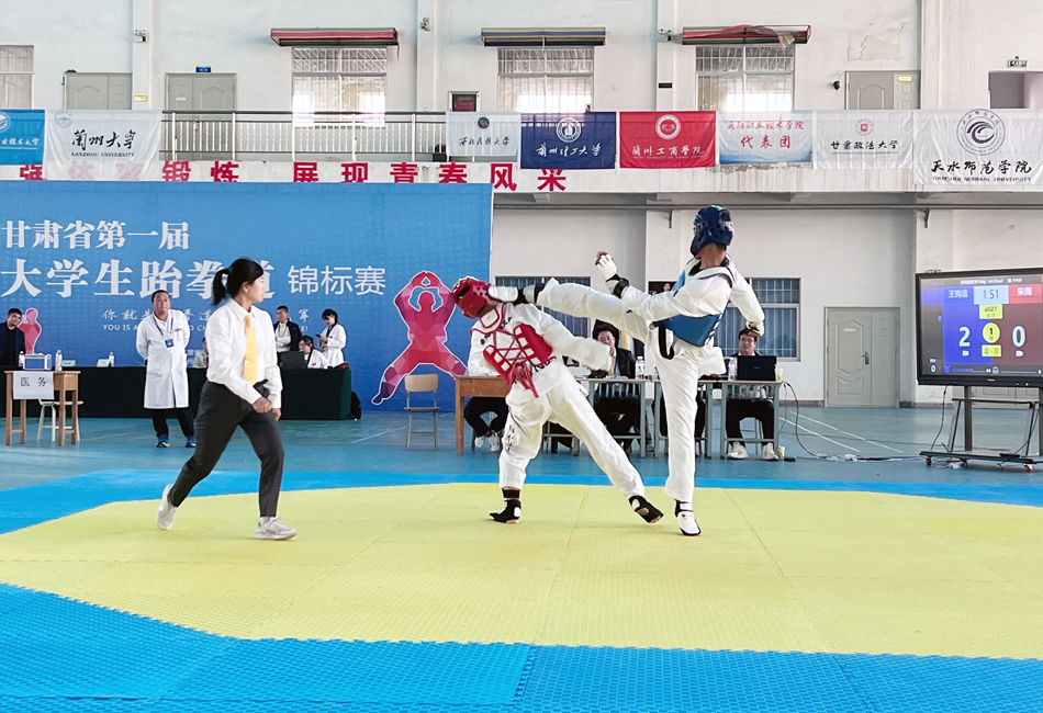 近日,由省跆拳道拳击运动协会主办、兰州工商学院承办、省大学生跆拳道协会协办的甘肃省第一届大学生跆拳道锦标赛在兰州工商学院落下帷幕。全省有15所高校的16支代表队共200余名运动员参赛,比赛分阳光组和体育组,有品势、竞技两个大项共16个小项。我校14名学子参加了体育组的比赛。