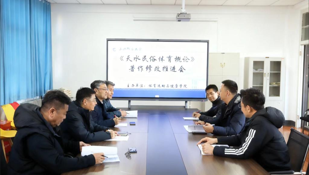 11月20日下午,天水师范大学m88 app在2号教学楼223会议室召开《天水民俗体育概论》著作修改推进会。会议由著作编写团队负责人苏兴田教授主持,特邀请了长期从事地方志编写工作、美术学领域研究和体育学领域研究的4位专家。著作编写团队成员参加会议。