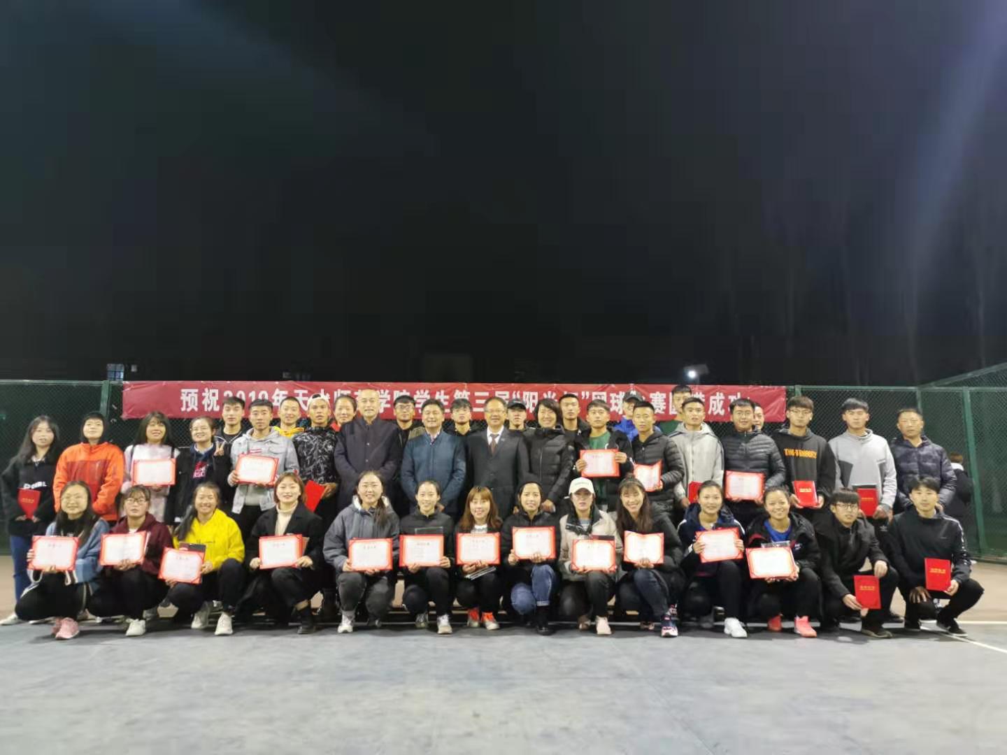 11月14日晚,m88 app大学生第三届“阳光杯”网球赛在网球场圆满落幕,本届比赛设男单、男双、女单、女双和混双五个单项,共有来自全校13个二级学院的257名运动员参加比赛。