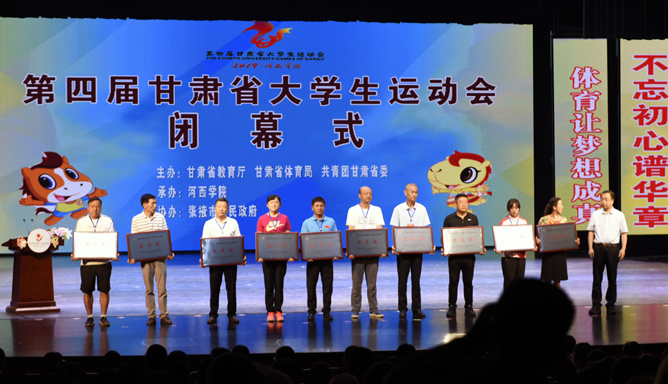 7月30日上午,第四届甘肃省大学生运动会在河西学院河西大讲堂落下帷幕,省教育副厅长、组委会副主任王光亚,张掖市副市长、组委会副主任王向机和大运会组委会全体成员出席了闭幕式并为获奖代表颁奖。来自各参赛高校代表团的领导、教练员及运动员代表参加了闭幕式。我校校长安涛应邀参加闭幕式。