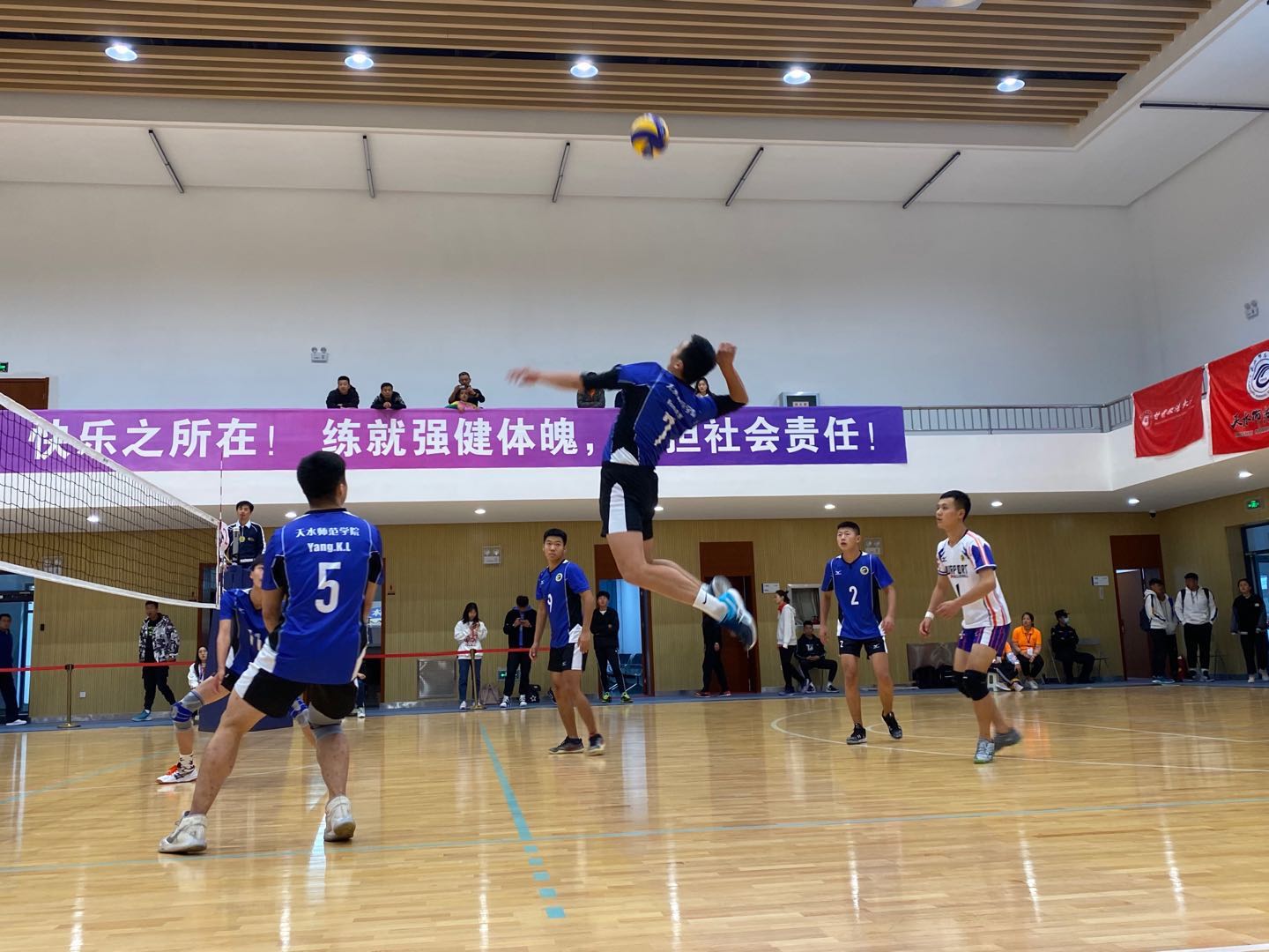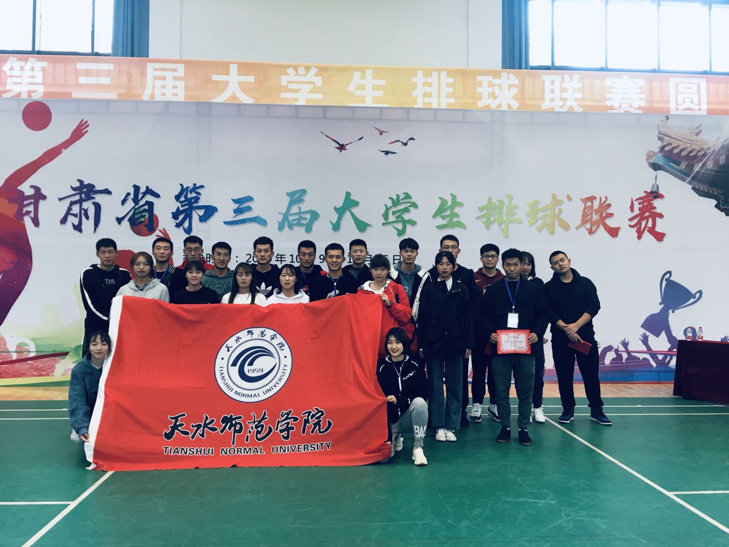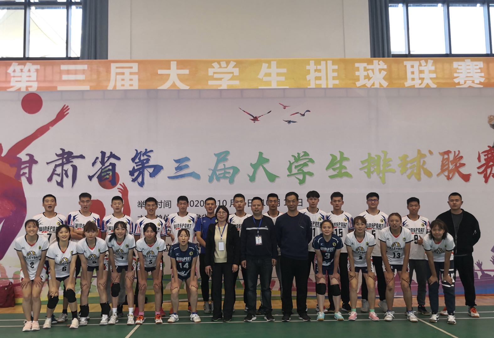 10月9日上午,由甘肃省教育厅主办,兰州大学承办,甘肃省学校体育协会、甘肃省排球运动协会协办的甘肃省第三届大学生排球联赛在兰州大学城关校区综合训练馆隆重开幕。此次比赛中,共有来自19所高校31支代表队、共计420余名运动员参赛,我院派出男、女两支代表队与体育类兄弟院校的代表队争夺乙组殊荣。