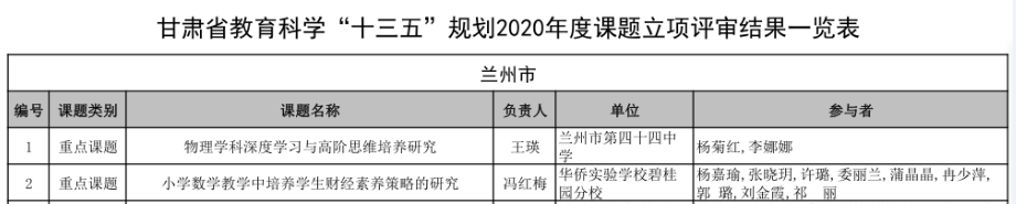 近日,甘肃省教育科学“十三五”规划2020年度课题评审结果揭晓。我院苏兴田老师的《基于身体素养的普通高校公共体育“四位一体”教学探索与创新》和蔡中老师的《立德树人视域下高校武术“课程思政”教学改革路径探究》成功立项。