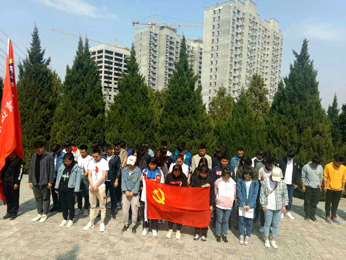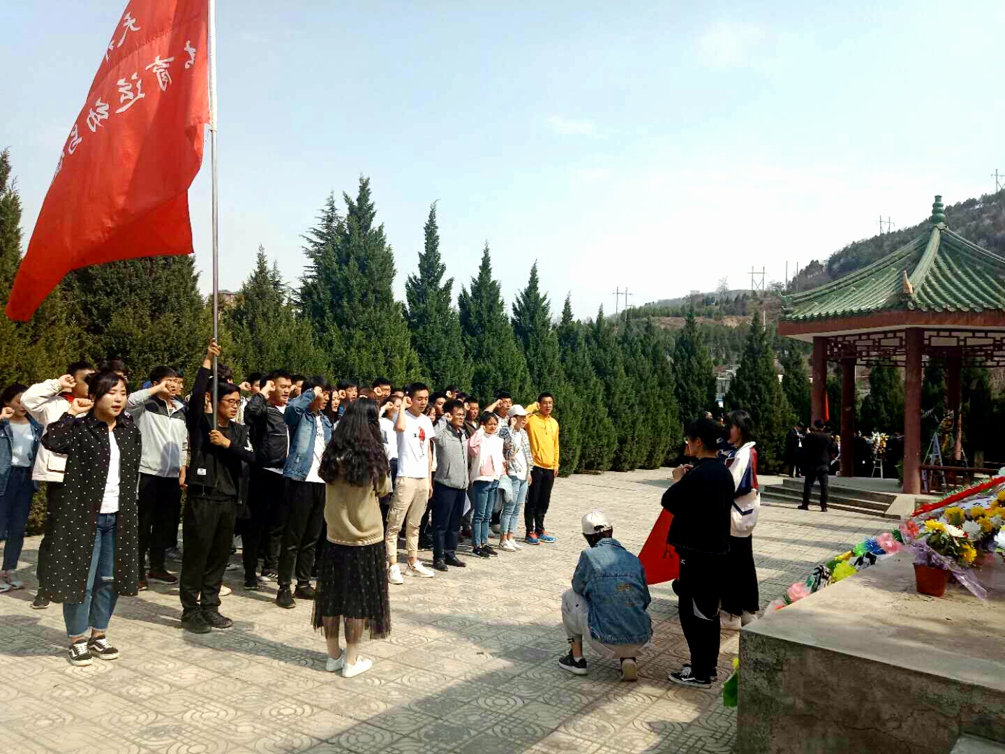 4月4日下午在清明节之际,m88 app党总支组织师生代表前往天水市南山烈士陵园,开展以“扬先烈精神,颂爱国情怀”为主题的祭扫活动。参加祭扫活动的有辅导员张海军、潘婷婷、冉彩荣,学生党员、预备党员、入党积极分子以及学生会成员等50余人,活动由辅导员张海军主持。
