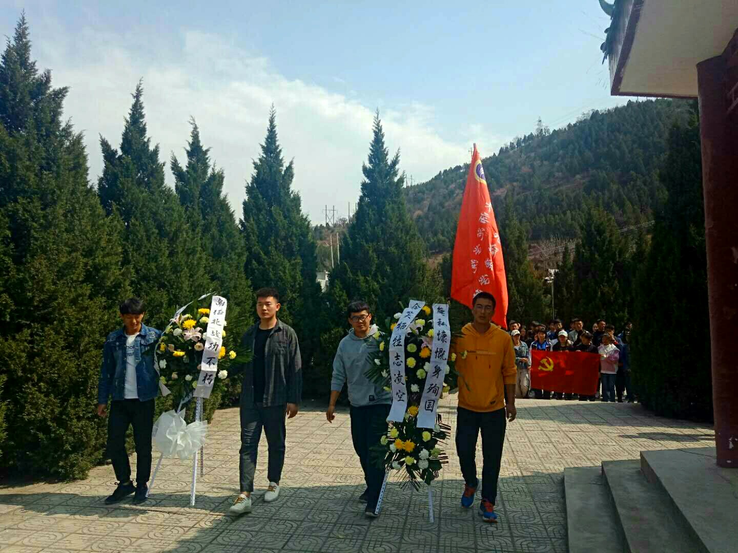 活动伊始,学生代表向先烈进献花篮;学院辅导员潘婷婷、冉彩荣整理挽联,全体师生向革命烈士以及在四川木里森林火灾扑救中英勇牺牲的烈士默哀,以表达对革命先烈的崇高敬意和无限哀思;潘婷婷老师代表教师要求师生党员及入党积极分子要学习革命精神,要铭记先烈的不朽功勋,发扬先烈光荣事迹,继承先烈的革命遗志;学生党员罗华梅代表学生作了表态发言,她表示要从自身做起,努力完成学习知识、锻造品德、强健身体的重任,以优异的学习成绩和为共产主义奋斗终身的革命情怀报效祖国。