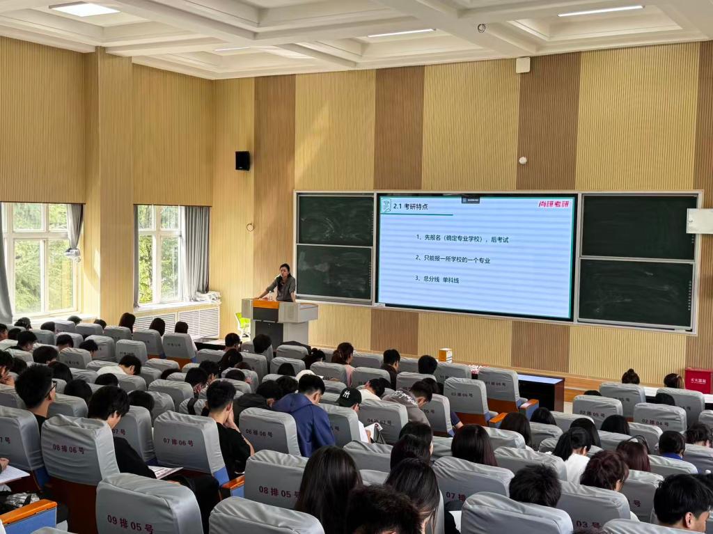 为帮助我院学生深入了解考研动态、科学规划备考方案,2025年8月31日下午3:00,m88 app在2号教学楼222教室成功举办考研英语专题讲座。本次活动邀请尚研考研吴妮老师担任主讲,面向2022级毕业班全体学生及2023级、2024级有考研意向的部分同学,近两百名学生参加。